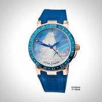 В то же время водонепроницаемость до 200 метров включительно превращает наручные часы Ulysse Nardin Maxi Marine Chronograph в реальный инструмент не только для отдыха на берегу или управления яхтой, но и для серьезного подводного плаванья. Для желающих использовать эти хронографы в таком качестве, компания комплектует их черными каучуковыми ремешками, не боящимися воды.
